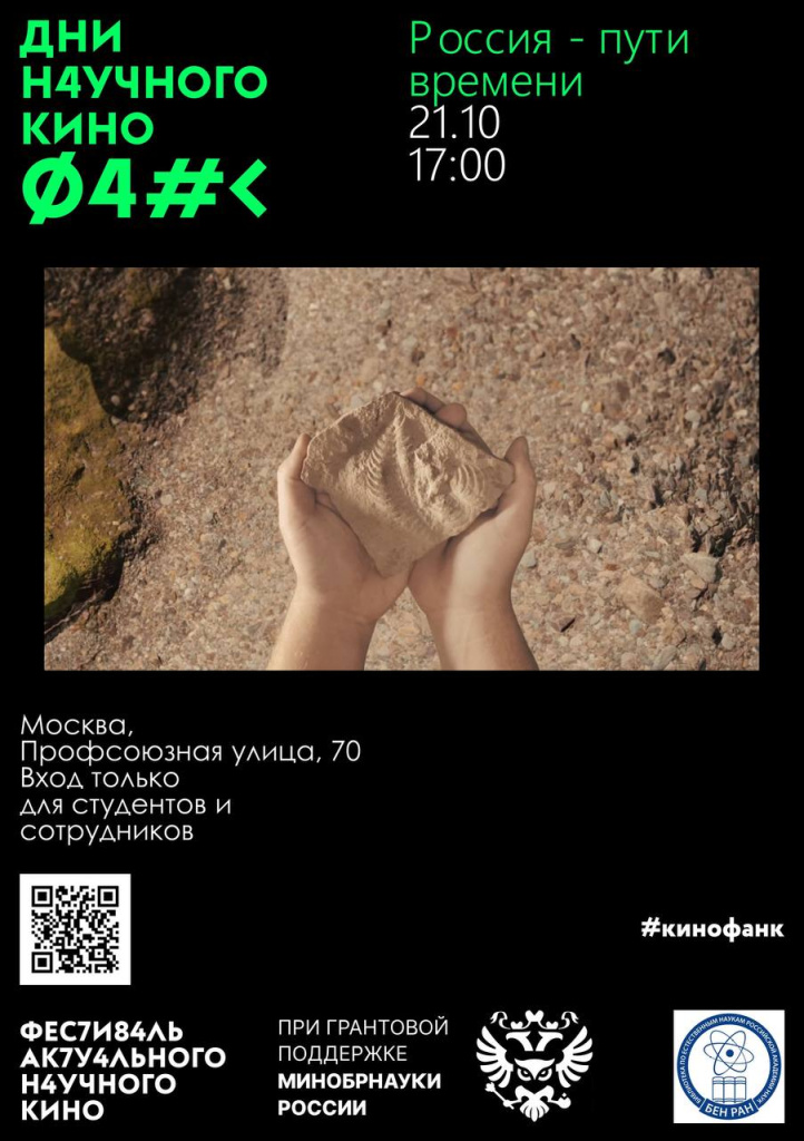22 октября в Институте синтетических полимерных материалов им. Н. С. Ениколопова РАН состоится показ фильма "Россия — пути времени", организованный отделом БЕН РАН в ИСПМ, в рамках Дней научного кино ФАНК
