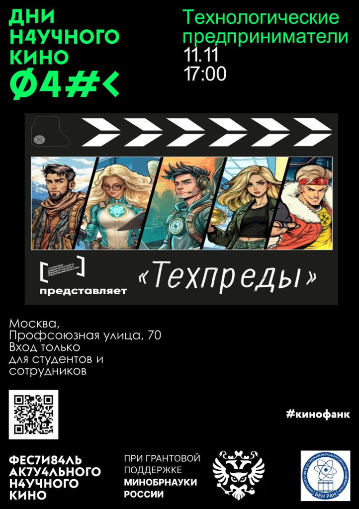 11 ноября в Институте синтетических полимерных материалов им. Н. С. Ениколопова РАН состоится показ фильма «Технологические предприниматели», организованный отделом БЕН РАН в ИСПМ, в рамках Дней научного кино ФАНК.