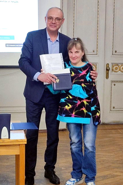 О.О. Махно торжественно вручил Л.В. Митрофановой - нагрудный знак «Ветеран»