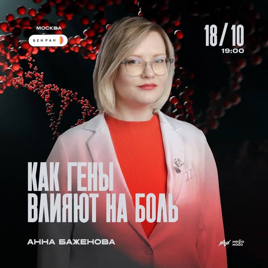 18 октября в главном здании БЕН РАН состоится лекция Анны Баженовой "Как гены влияют на боль"