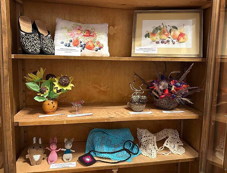 В очередной раз свое высочайшее мастерство продемонстрировали не только сотрудники различных отделов библиотеки, но и их дети и внуки. На выставке представлены прекрасные образцы ручной работы, хобби и творчества: вышивка, вязание, композиции, картины, вязаные игрушки и многое многое другое.