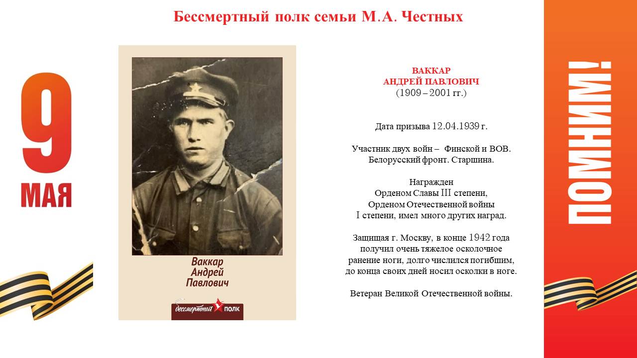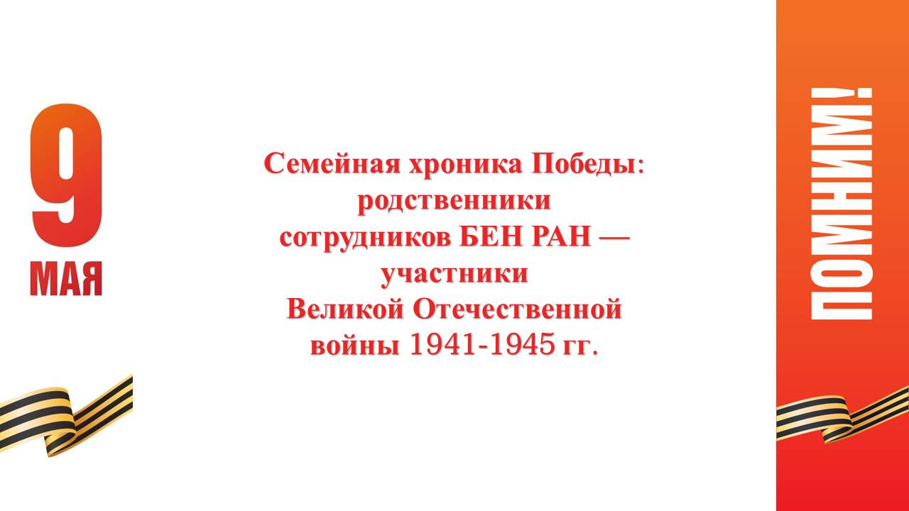 Семейная хроника Победы: родственники сотрудников БЕН РАН - участники Великой Отечественной войны