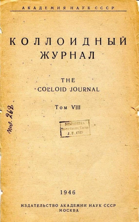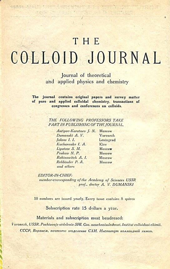 ведущих учёных мира по тематике журнала и Коллоидный журнал стал своеобразной мировой научной площадкой для обсуждения новых работ, как среди советских ученых, так и среди зарубежных коллег.
